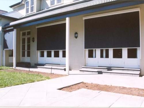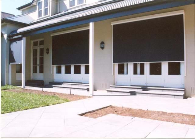 Straight drop awnings are exterior Roller Blinds useful for blocking sun-glare and providing day-time privacy without necessarily disrupting your view. They are available in a range of fabrics and colours in both solid and outdoor micro-screen fabrics. They are housed in a powder coated aluminium box and can be colour matched to nearly any commercially available colour. Available in manual or remote control operation.